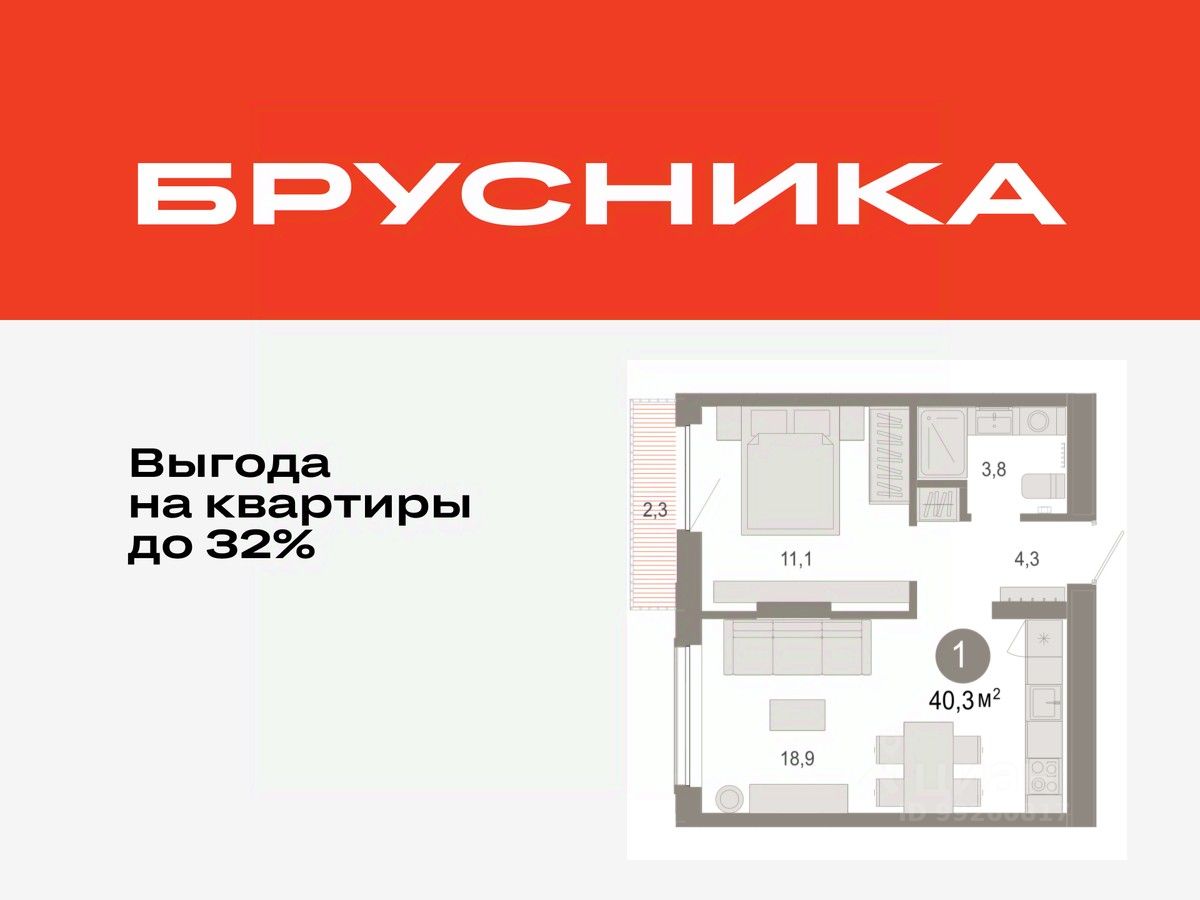 Квартира с кухней-гостиной и одной спальней в Октябрьском на Туре. Особенности планировки: предчистовая отделка, балкон.