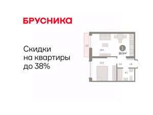 Квартира с кухней-гостиной и одной спальней в Октябрьском на Туре. Особенности планировки: предчистовая отделка, рабочий кабинет.