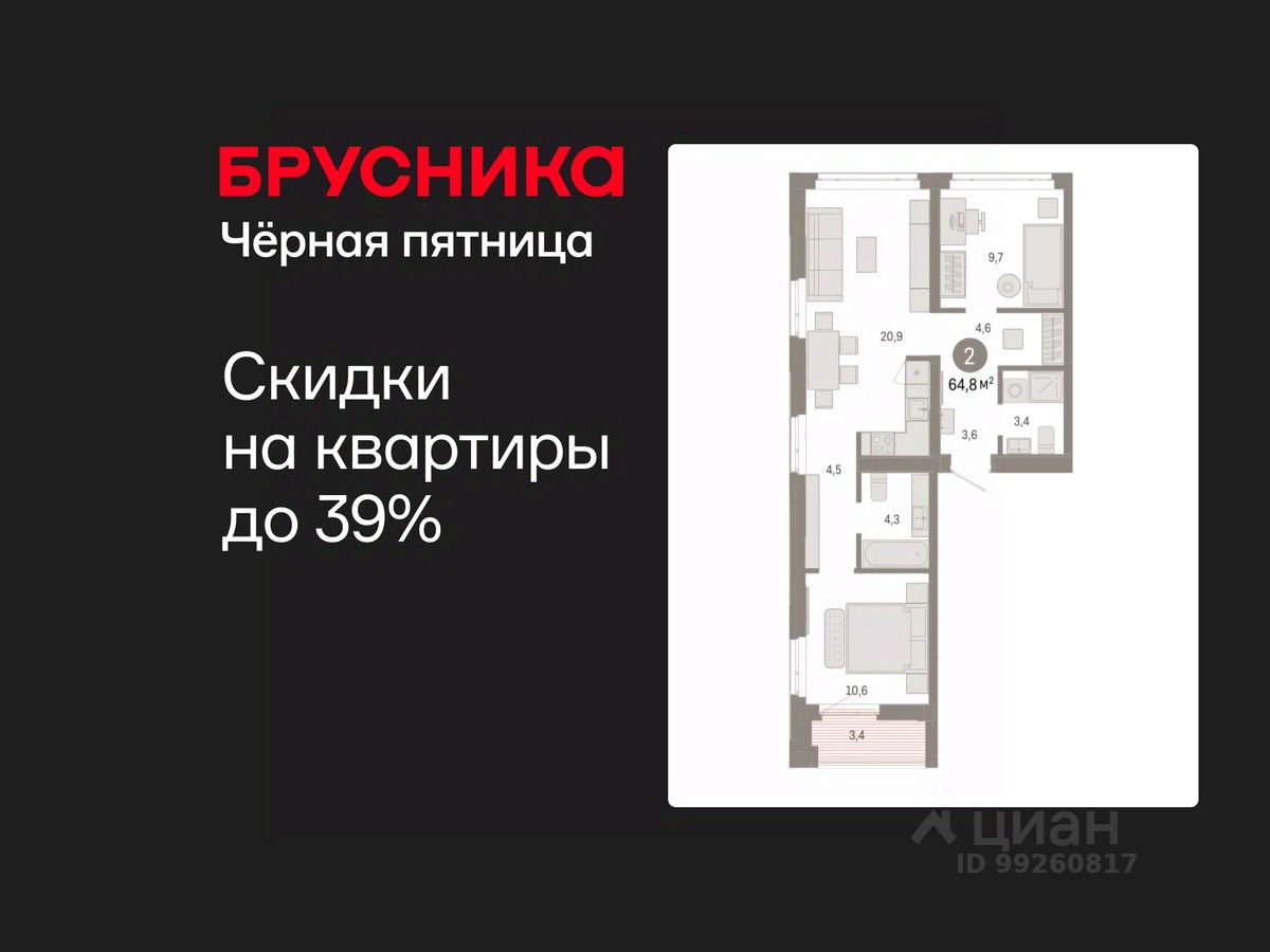 Продается 2-комн. квартира с предчистовой отделкой в ЖК "Республики 205" на 7 этаже. Общая площадь: 64.77 кв.м., жилая: 20.3 кв.м., площадь просторной кухни-гостиной: 20.9 кв.м. Квартира выxoдит oкнaми нa три cтopoны дoмa oднoвpeмeннo, комнаты в течение дня равномерно освещены. В квартире один балкон, два совмещенных санузла. Высота потолков 2.7 м.