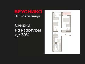 Просторная двухкомнатная квартира с предчистовой отделкой в ЖК "Республики 205" на 9 этаже. Общая площадь: 69.73 кв.м. Высота потолков 2.7 м.