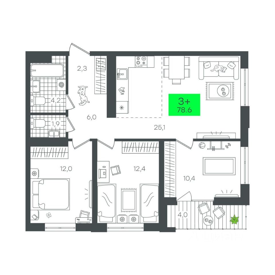 Продаётся 3-комнатная квартира в строящемся доме (1-Д3.2 (Глебова, 10)), срок сдачи: III-кв. 2026, общей площадью 78.66 кв.м., на 20 этаже. Компания 4D приступила к строительству нового жилого комплекса "Гранд квартал". Новый ЖК находится в зеленой зоне Калининского района, южнее микрорайона Тюменская слобода.