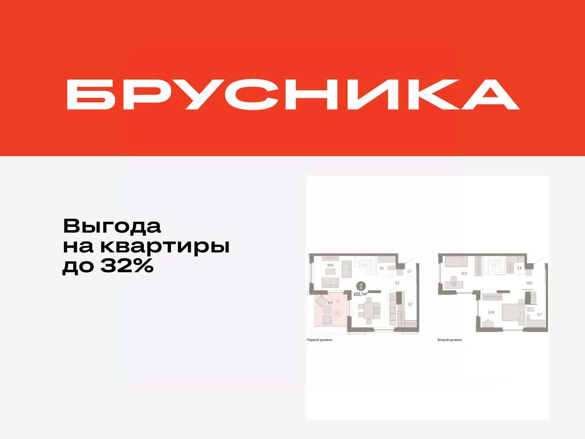 Двухуровневая квартира с кухней-гостиной и двумя спальнями в жилом районе "Зарека". Особенности планировки: без отделки, двухуровневая, свободная планировка, мастер-спальня, постирочная, терраса на крыше.