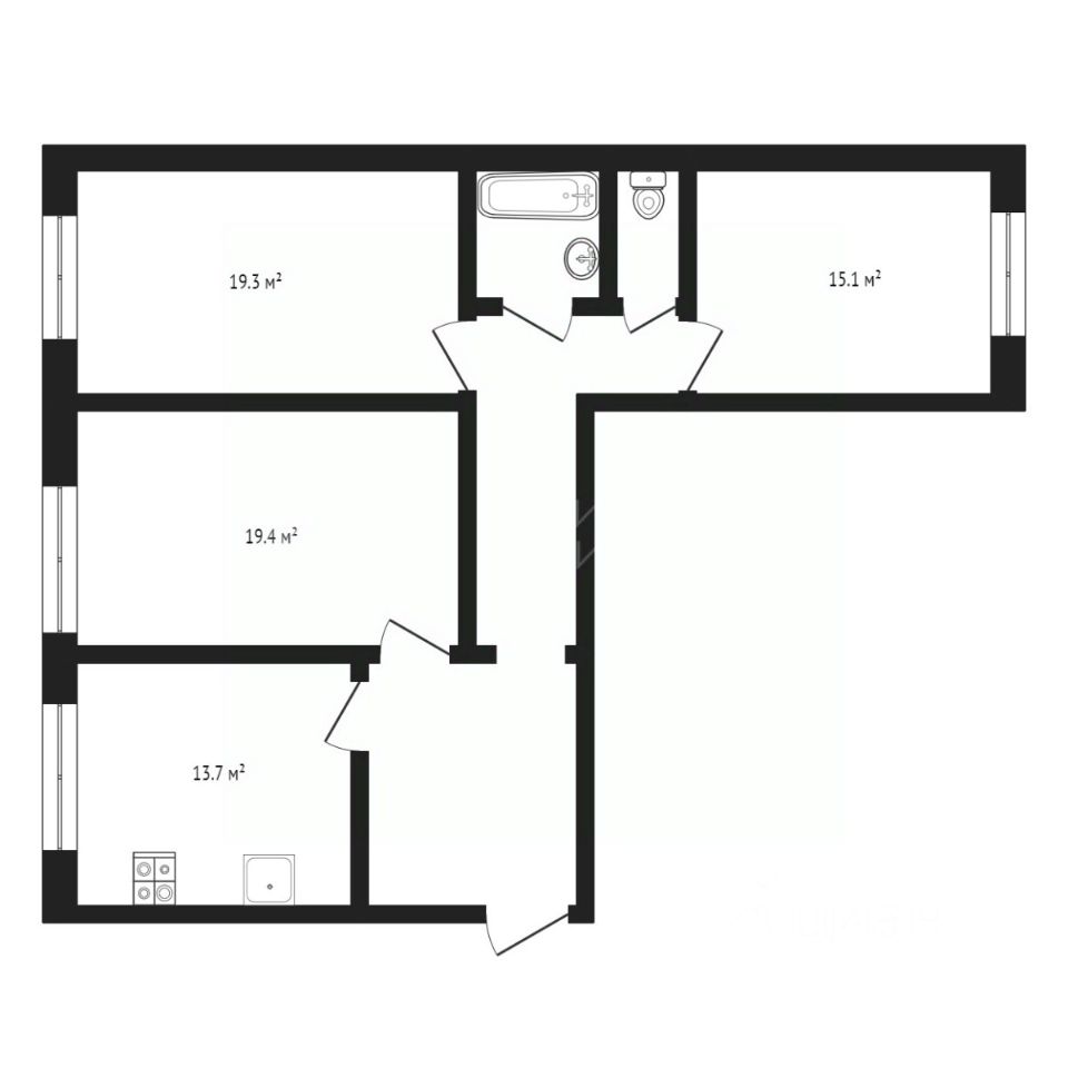 Квартира с шикарной планировкой: комнаты изолированы, светлые, просторная кухня.