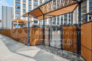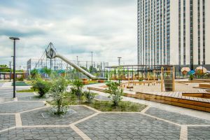 В холле 9 лифтов, предусмотрено рабочее место консьержа, дом под круглосуточной охраной, закрытый двор с комфортными детскими и спортивными площадками, японским садиком и местами отдыха для взрослых.
