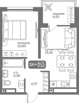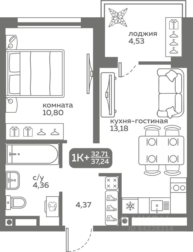Прямая продажа от застройщика! Продается однокомнатная квартира в строящемся ЖК "Меридиан Слобода", срок сдачи: I-кв. 2027, общей площадью 32.71 м², на 13 этаже из 20. Площадь кухни — 13.18 м².