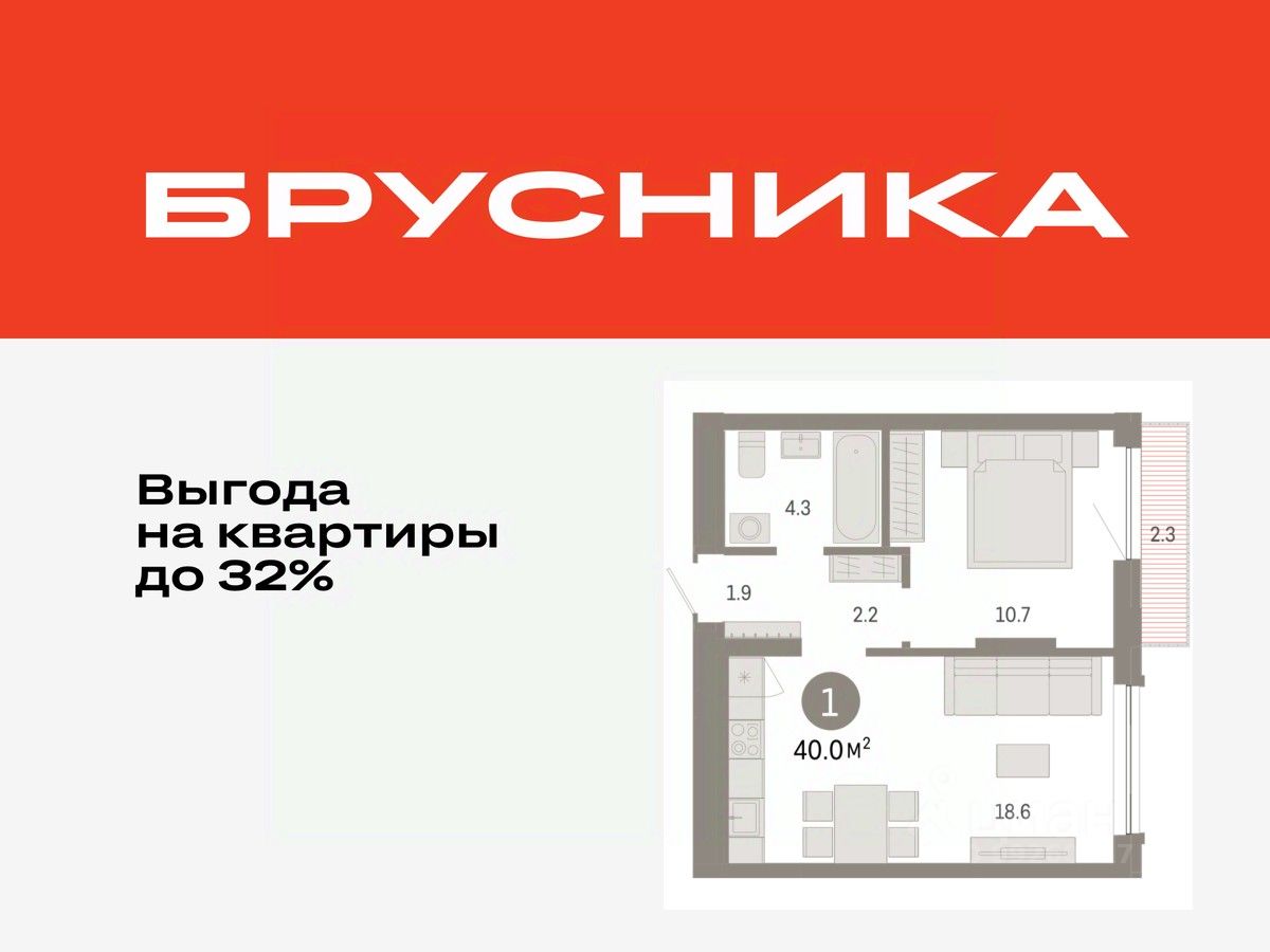 Квартира с кухней-гостиной и одной спальней в Октябрьском на Туре. Особенности планировки: предчистовая отделка, балкон.