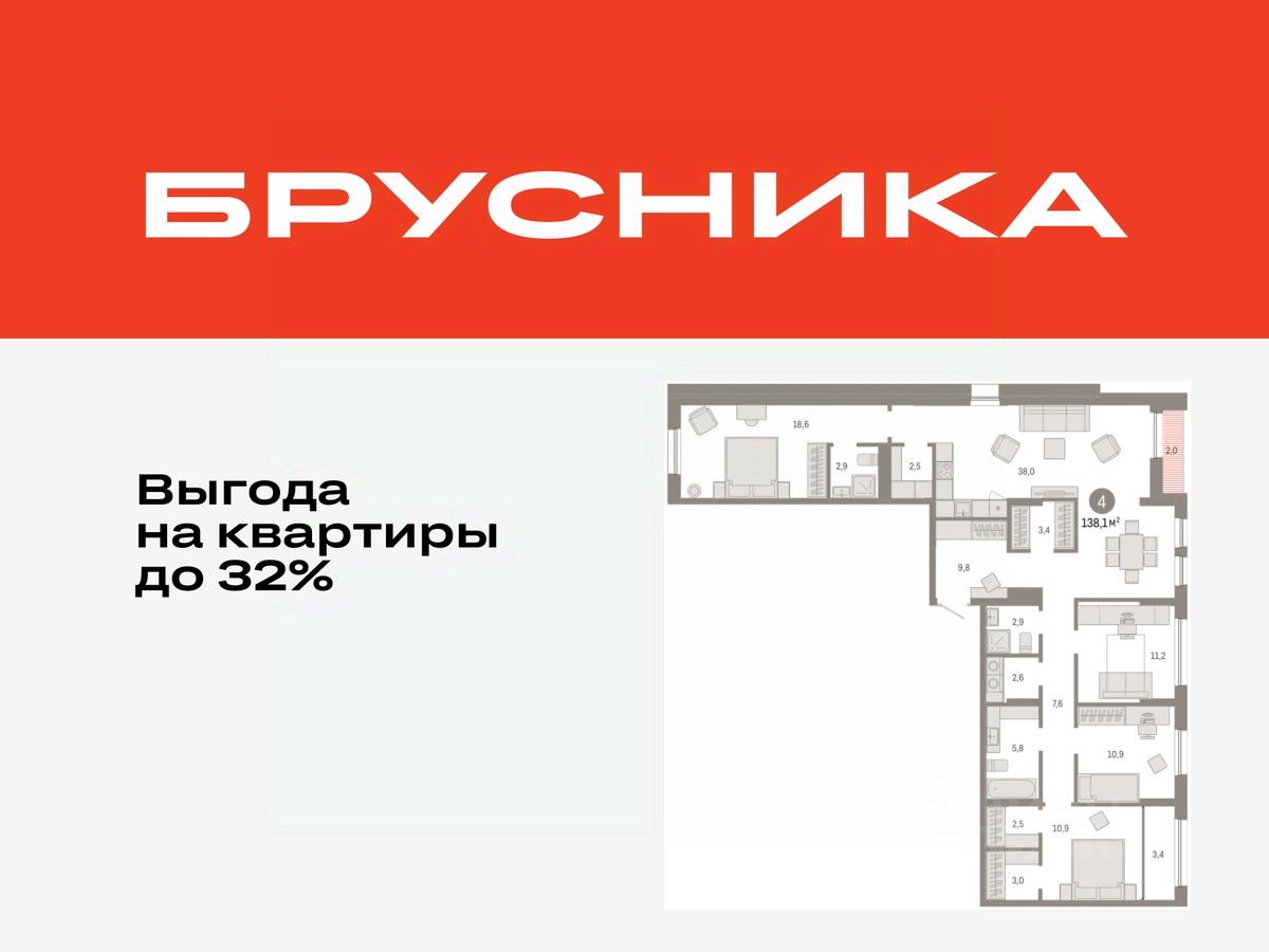 4-комн. квартира с предчистовой отделкой в ЖК "Республики 205" на 2 этаже. Общая площадь: 138.11 кв.м., жилая: 51.6 кв.м., площадь просторной кухни-гостиной: 38 кв.м. Квартира без проходных комнат, окна выходят нa три cтopoны дома. В квартире две лоджии, три совмещенных санузла. Высота потолков 2.6 м.