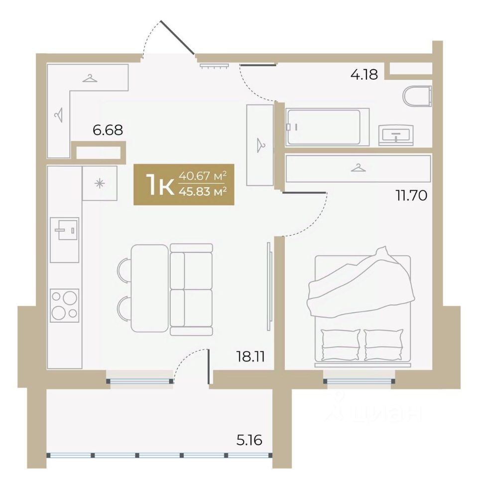 Продаётся 1-комнатная квартира в строящемся доме (Дом 5), срок сдачи: I-кв. 2026, общей площадью 40.67 кв.м., на 4 этаже. Новый жилой комплекс "Спутник-2" от специализированного застройщика "Спутник-2" расположен по адресу: г. Тюмень, по ул. Алматинская.