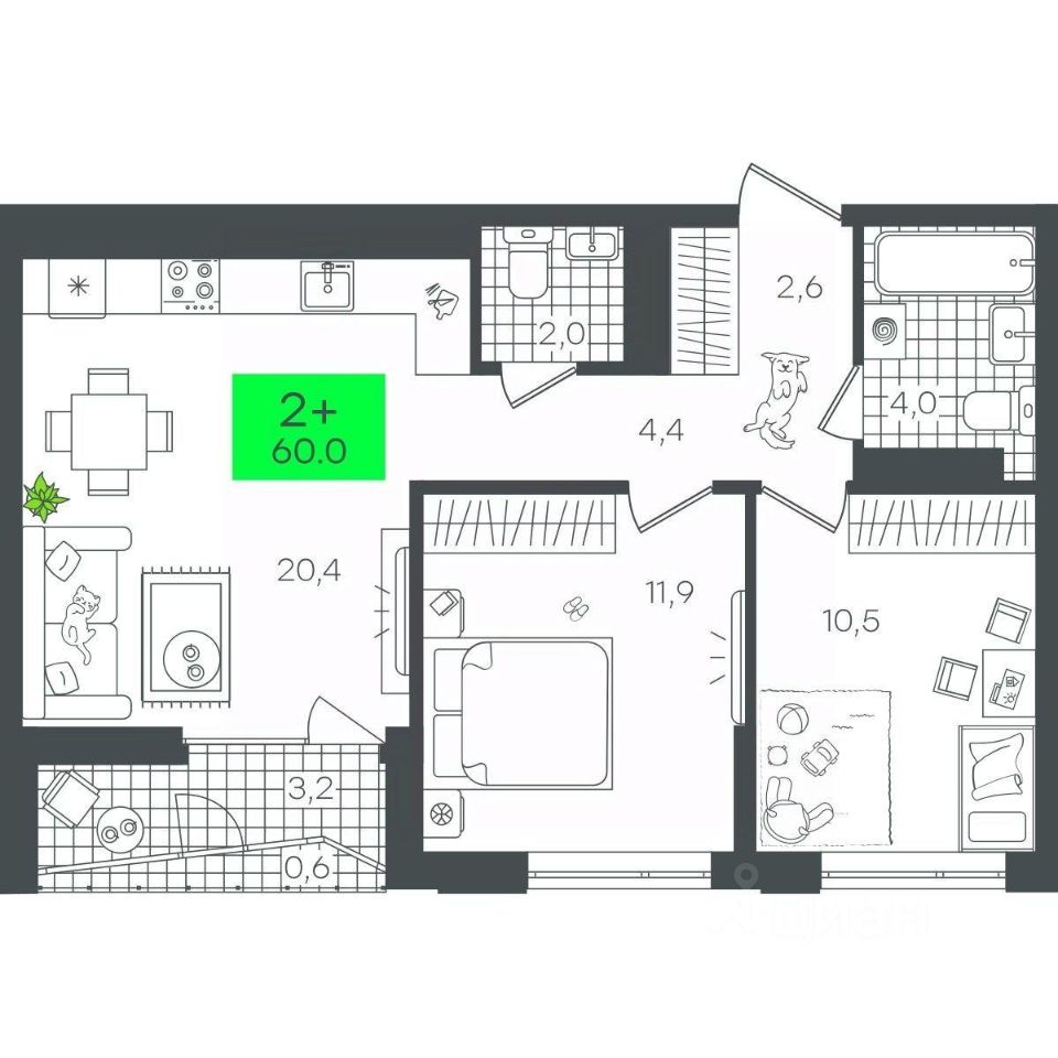 Продаётся 2-комнатная квартира в строящемся доме (1-Д3.1 (Глебова, 10)), срок сдачи: III-кв. 2026, общей площадью 60 кв.м., на 15 этаже. Компания 4D приступила к строительству нового жилого комплекса "Гранд квартал". Новый ЖК находится в зеленой зоне Калининского района, южнее микрорайона Тюменская слобода.