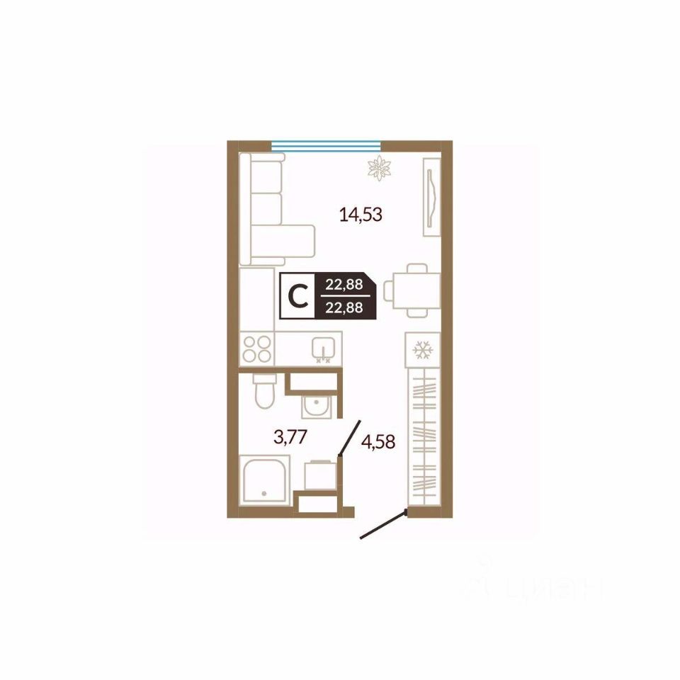 Общая площадь22,88 м²