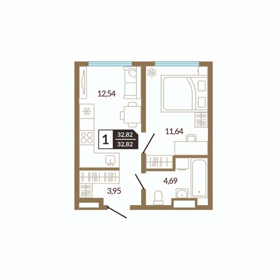 Общая площадь32,82 м²