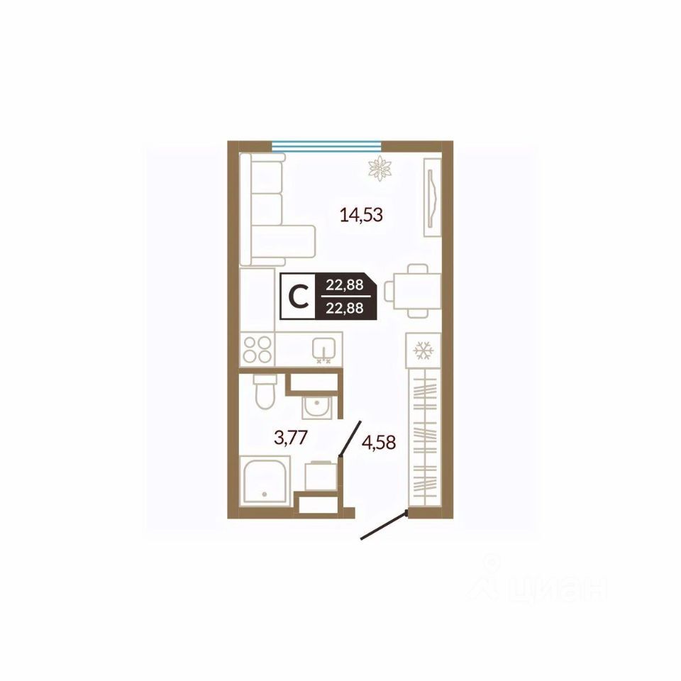 Общая площадь22,88 м²