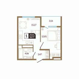 Общая площадь38,77 м²