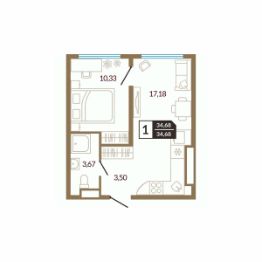 Общая площадь34,68 м²