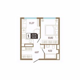 Общая площадь32,98 м²