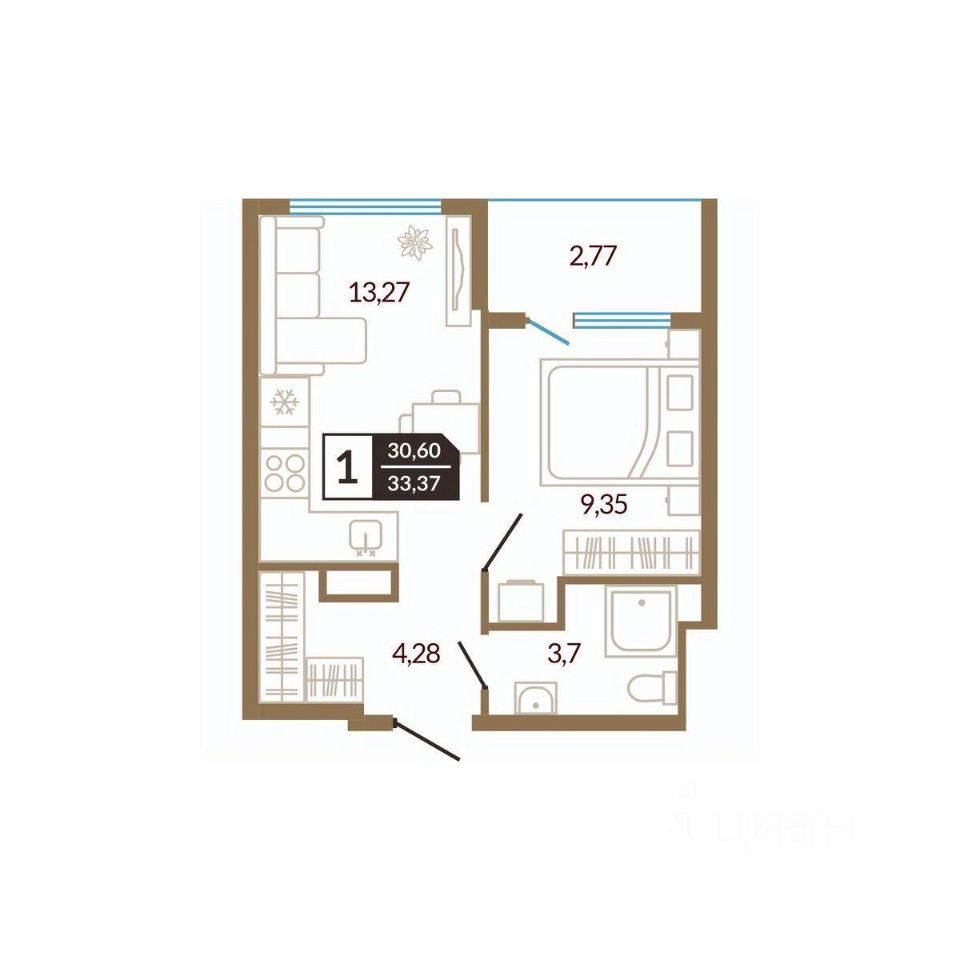 Общая площадь33,37 м²