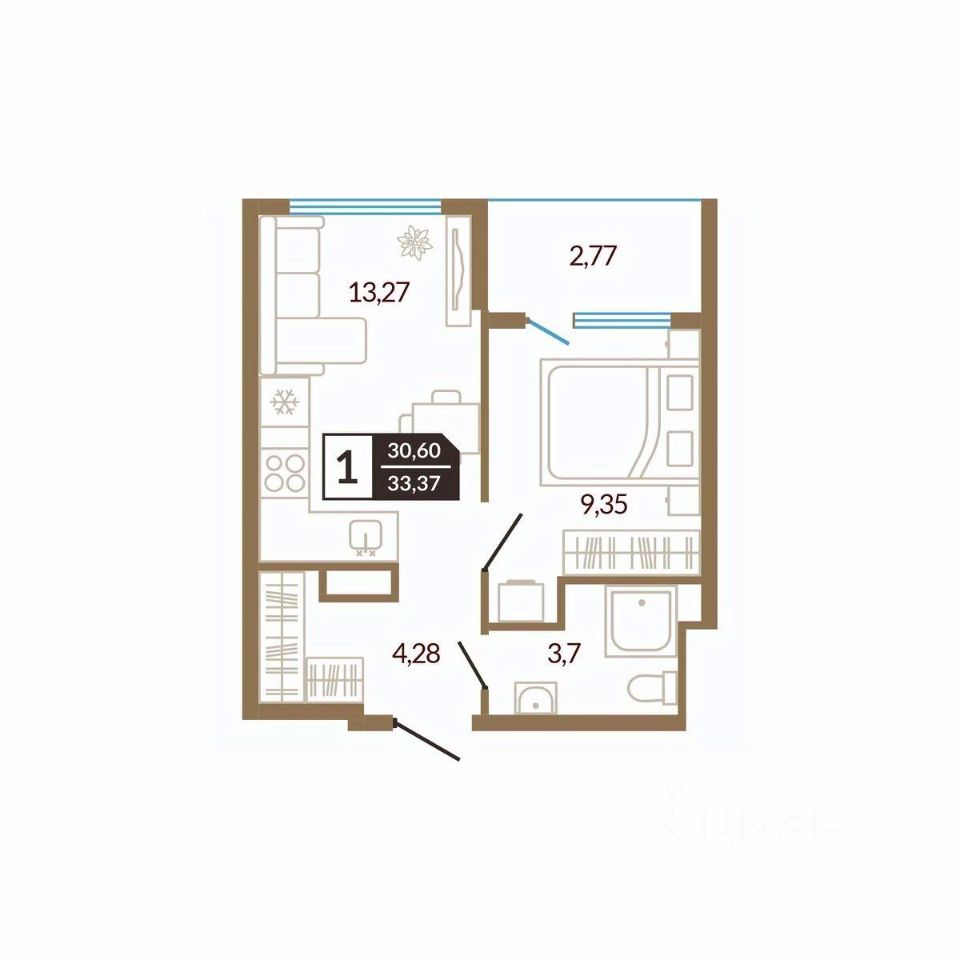 Общая площадь33,37 м²