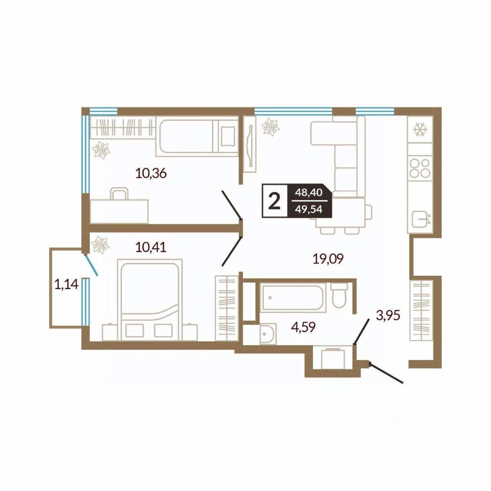 Общая площадь49,54 м²