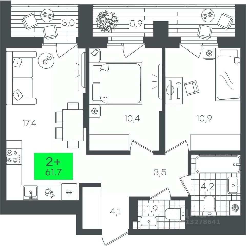 Продаётся 2-комнатная квартира в строящемся доме (3-В7.1 (Малкова, 17)), срок сдачи: III-кв. 2026, общей площадью 61.76 кв.м., на 6 этаже. Компания 4D приступила к строительству нового жилого комплекса "Гранд квартал". Новый ЖК находится в зеленой зоне Калининского района, южнее микрорайона Тюменская слобода.