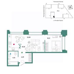 Продается 2комнатная квартира от застройщика "Страна Девелопмент". Стоимость указана без учета акций. Квартира на 29 этаже, площадь квартиры 41,51 кв. м. Сдача — в 3 квартале 2025 года.