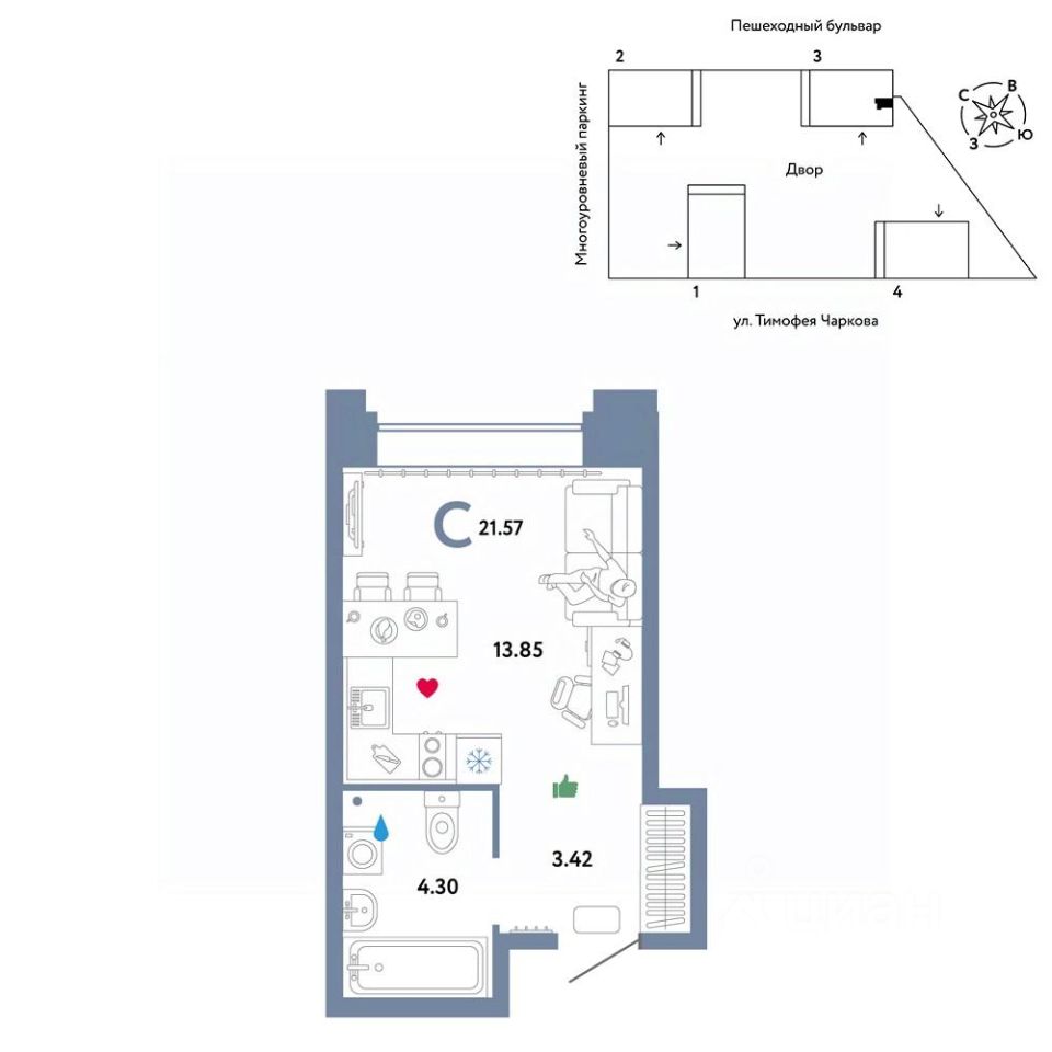 Продается студия от застройщика "Страна Девелопмент". Стоимость указана без учета акций. Квартира на 29 этаже, площадь квартиры 21,57 кв. м. Сдача — в 3 квартале 2025 года. Четыре 32-этажные башни со смещенными осями, объединенные общим стилобатом. На крыше дома появятся детские и спортивные площадки, зоны для релакса и отдыха. А в самом стилобате — торговая галерея и паркинг. У жителей будет свой сад с площадкой для йоги и воркаута, а еще с лаунж-зонами для чтения книг и пикников в тени деревьев. Пока вы занимаетесь спортом или отдыхаете, дети смогут вдоволь набегаться на детских площадках. "Звездном" есть планировочные решения под потребности каждой семьи. Среди их особенностей — просторные кухни-гостиные, мастер-спальни, гардеробные и кладовые. А для тех, кто ищет особенный вариант — двухуровневые квартиры с отдельным входом и квартиры с бильярдной или фитнес-залом. ОТДЕЛКА: Мы сдаем квартиры с предчистовой отделкой. Всё уже готово к ремонту: выведена разводка электричества и отопления, выполнена стяжка пола, стены выровнены. Вам останется выбрать материалы и приступить к ремонту. При покупке квартиры в ЖК "Звездный" можно включить стоимость ремонта в ипотеку. Застройщик предлагает три варианта цветовых решений: натуральный, светлый или тёмный. СПОСОБЫ ПОКУПКИ: Сотрудники Страны Девелопмент будут сопровождать вас на каждом этапе сделки, помогут получить одобрение по ипотеке или снизить ежемесячный платеж. -Ипотека -Материнский капитал -100% оплата наличными