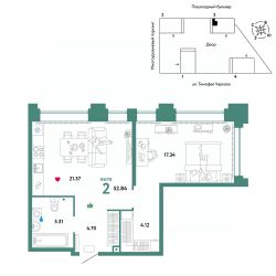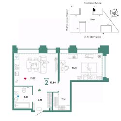 Продается 2комнатная квартира от застройщика "Страна Девелопмент". Стоимость указана без учета акций. Квартира на 31 этаже, площадь квартиры 52,84 кв. м. Сдача — в 3 квартале 2025 года.