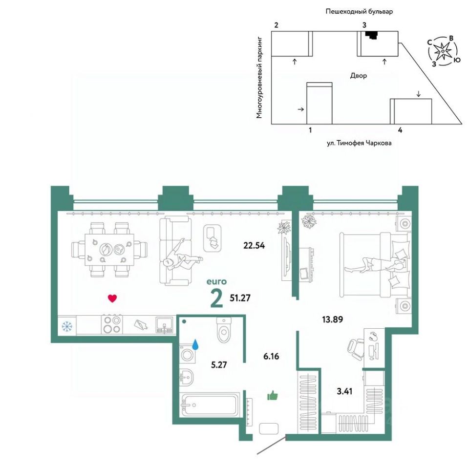 Продается 2комнатная квартира от застройщика "Страна Девелопмент". Стоимость указана без учета акций. Квартира на 31 этаже, площадь квартиры 51,27 кв. м. Сдача — в 3 квартале 2025 года.