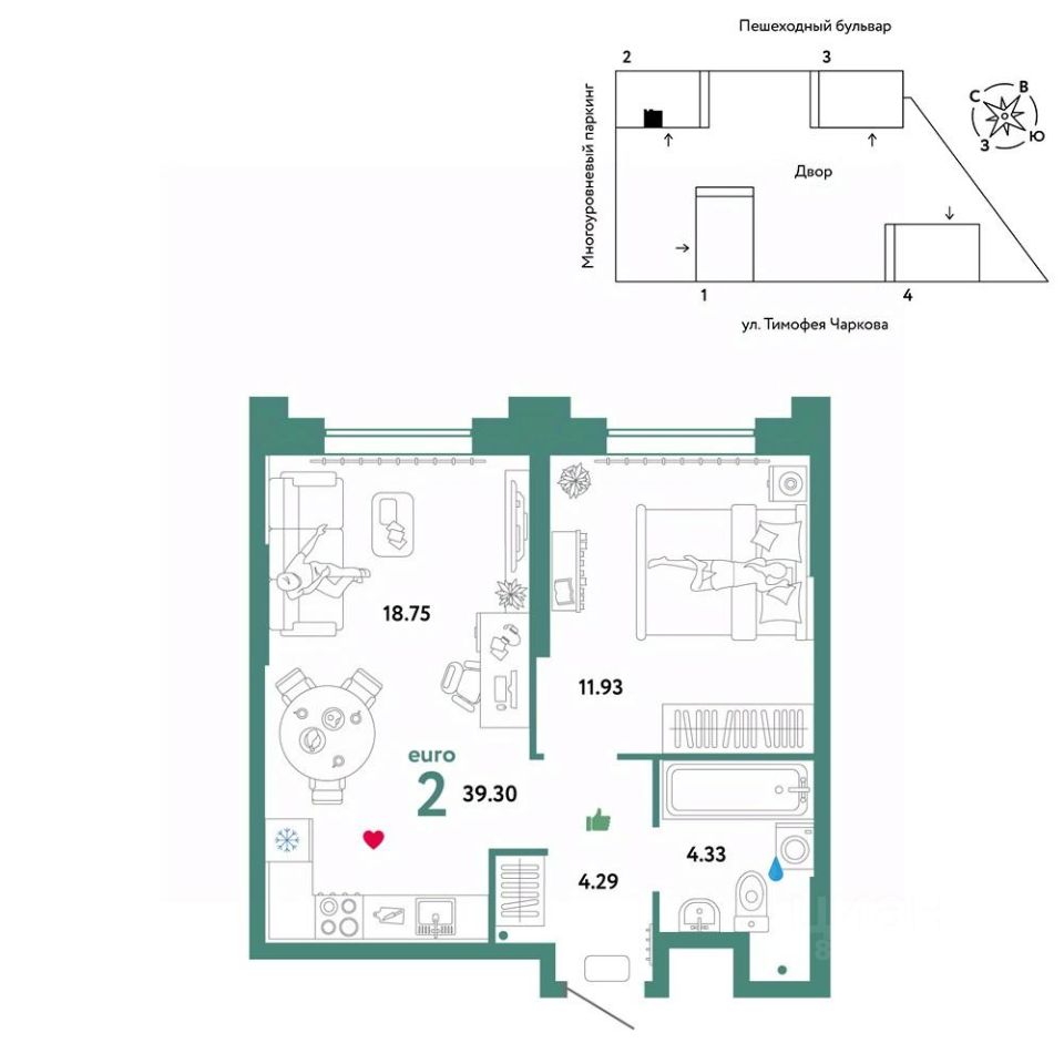 Продается 2комнатная квартира от застройщика "Страна Девелопмент". Стоимость указана без учета акций. Квартира на 20 этаже, площадь квартиры 39,3 кв. м. Сдача — в 3 квартале 2025 года.