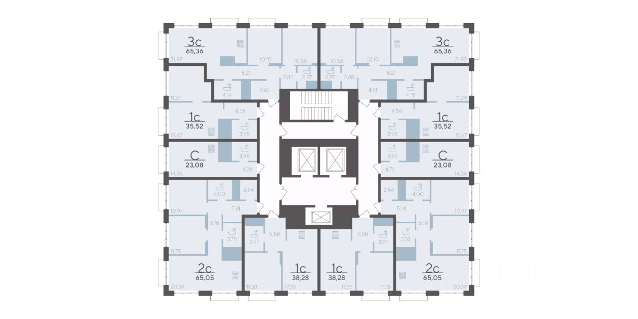 Квартира с двумя спальнями площадью 65.05 кв.м на 18 этаже с продуманной планировкой. Площадь квартиры условно разделена на гостевую зону и личное пространство только для вас и вашей семьи.