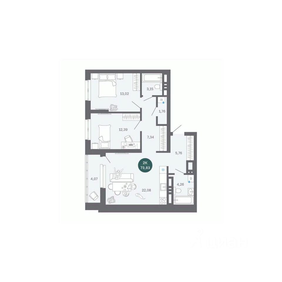 Общая площадь73,83 м²