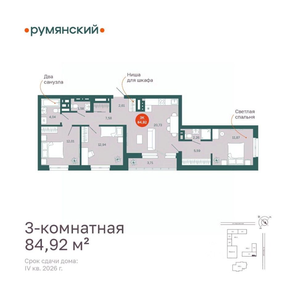 Жилой комплекс "Румянский" — дом с большими перспективами в пяти минутах от центра Тюмени для тех, кто не представляет жизнь без теплых вечеров в кругу семьи и приятных эмоций. Он воплощает мечты об уютном гнёздышке и отвечает "Да!" на любые запросы семей. Продуманные квартирные решения, безопасный закрытый двор с развивающими детскими площадками и близость к центру города. Все это значительно упрощает жизнь и оставляет больше сил на главное — время, которое можно провести с любимыми. В рецепте счастья кроется секретный ингредиент от застройщика — возможность приобретения готовых квартир с ремонтом. Именно он создает тот самый, неповторимый вкус новой жизни. Здесь всегда есть место семейным традициям и стремлению вперёд. Дети готовы к школе и приключениям. Родители открывают своё дело и занимаются саморазвитием. А студенты уверенно вступают во взрослую жизнь.