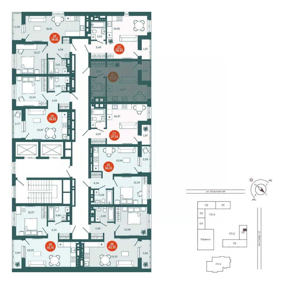 Общая площадь27,14 м²