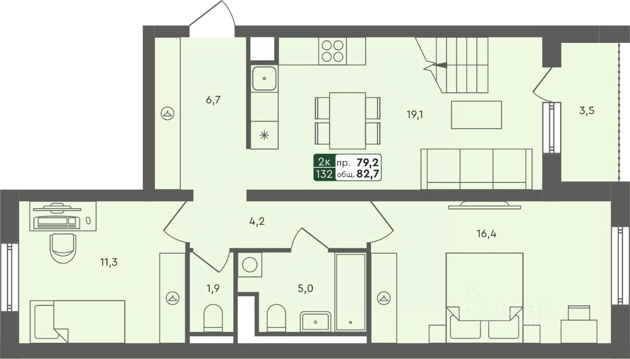 Продаётся 2-комнатная квартира в строящемся доме (ГП-3 (Бульварная, 2)), срок сдачи: IV-кв. 2025, общей площадью 82.6 кв.м., на 4 этаже. Проект в формате "Дома не выше сосен" отражает синтез великолепной архитектуры, престижной инфраструктуры и разумной стоимости. Жилье повышенного качества по доступной цене городского типа (квартиры), таунхаусы и индивидуальные дома с земельными участками характеризуются высокой транспортной доступностью исторического Тобольского тракта и формируют гармоничную и экологичную среду для комфортного проживания.