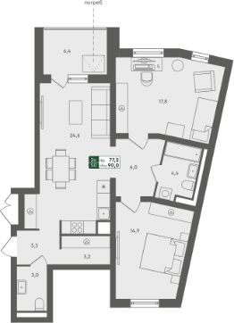 Продаётся 2-комнатная квартира в строящемся доме (ГП-3 (Бульварная, 2)), срок сдачи: IV-кв. 2025, общей площадью 90 кв.м., на 4 этаже. Проект в формате "Дома не выше сосен" отражает синтез великолепной архитектуры, престижной инфраструктуры и разумной стоимости. Жилье повышенного качества по доступной цене городского типа (квартиры), таунхаусы и индивидуальные дома с земельными участками характеризуются высокой транспортной доступностью исторического Тобольского тракта и формируют гармоничную и экологичную среду для комфортного проживания.