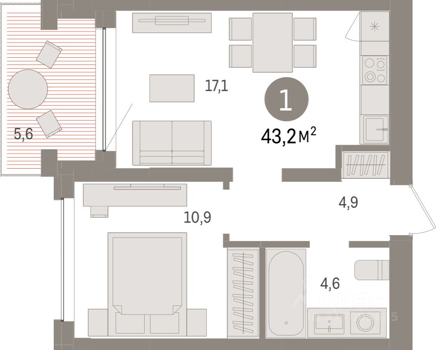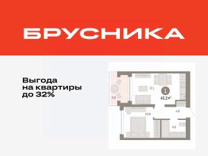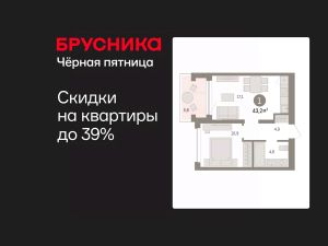 Квартира с кухней-гостиной и одной спальней в Доме у озера. Особенности планировки: предчистовая отделка, балкон.