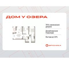 Квартира с кухней-гостиной и двумя спальнями в Доме у озера. Особенности планировки: гардеробная, вид во двор, лоджия, разнесённые спальни, предчистовая отделка, мастер-спальня.