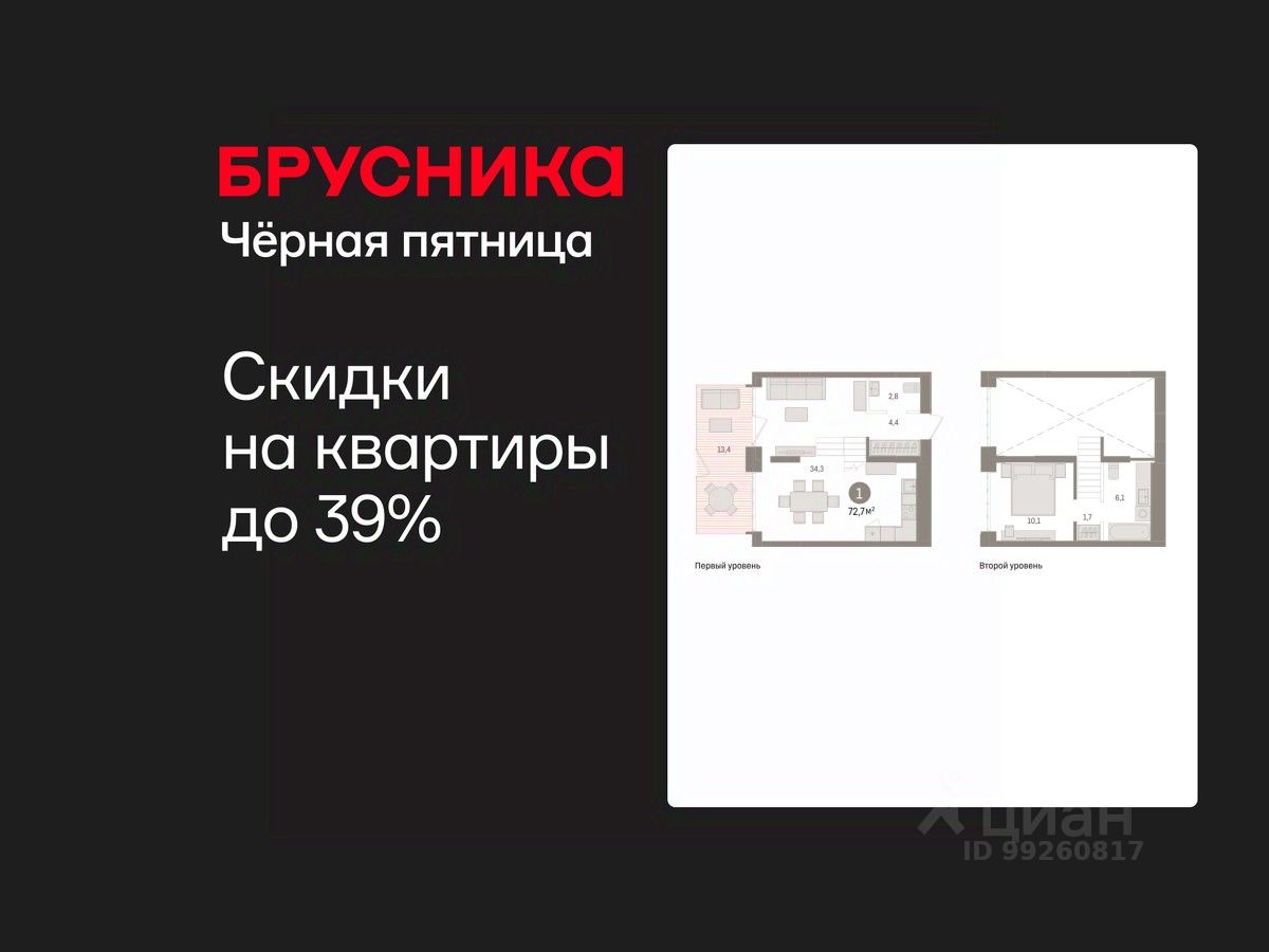 1-комн. квартира от застройщика с предчистовой отделкой в ЖК "Дом у озера" на 1 этаже. Двухуровневая квартира, большое количество свободного пространства дает возможность воплотить в жизнь свои дизайнерские идеи. Общая площадь: 72.74 кв.м., жилая: 10.1 кв.м., площадь просторной кухни-гостиной: 34.3 кв.м. Все окна выходят на одну сторону. В квартире один балкон, один совмещенный санузел. Высота потолков 2.7 м.