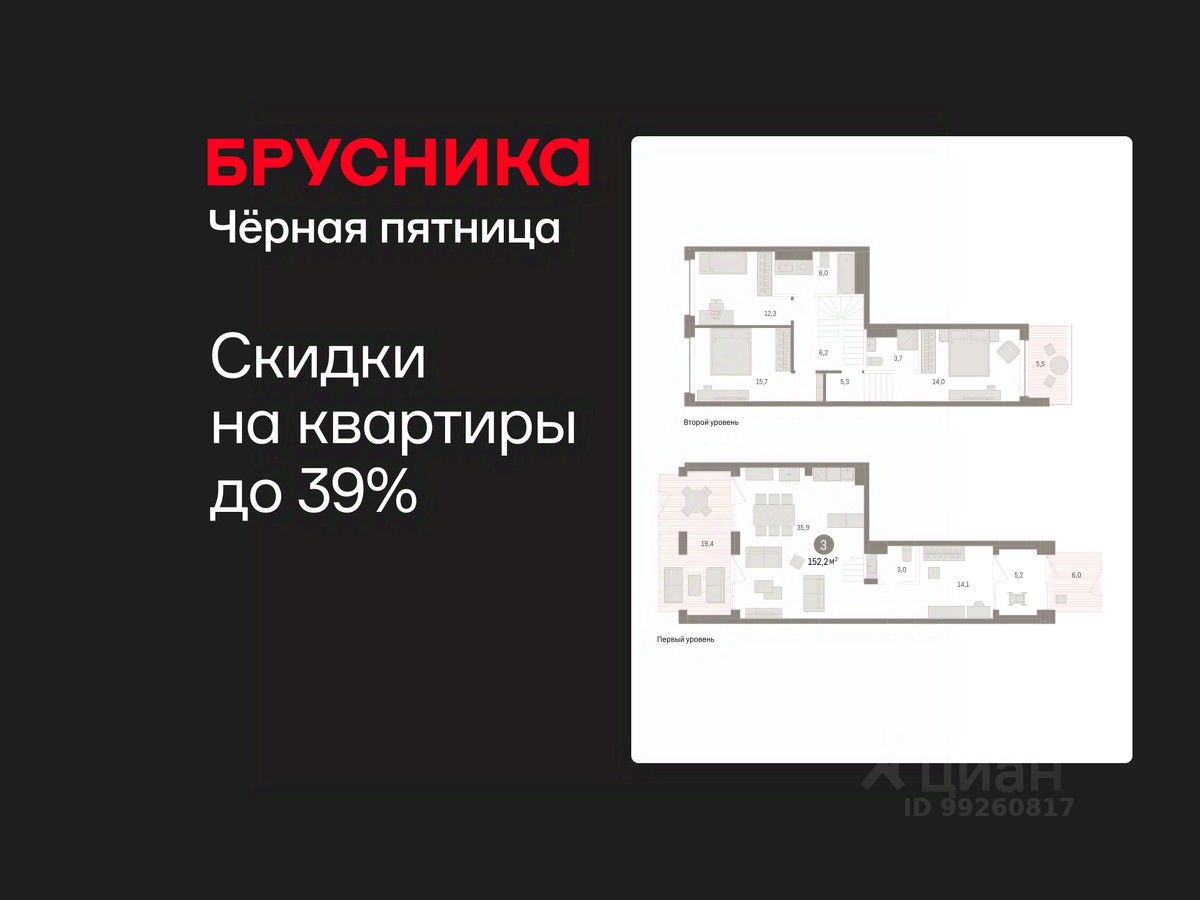 Двухуровневая квартира с кухней-гостиной и тремя спальнями в Доме у озера. Особенности планировки: окна на две стороны, второй санузел, окна в пол, двухуровневая, вид во двор, отдельный вход, разнесённые спальни, предчистовая отделка, терраса, балкон.