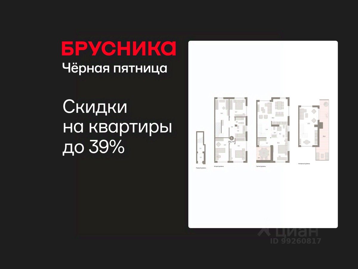 Двухуровневая квартира с кухней-гостиной и четырьмя спальнями в Доме у озера. Особенности планировки: второй санузел, окно в коридоре, гардеробная, окна в пол, окно в санузле, двухуровневая, вид во двор, отдельный вход, стактхаус, разнесённые спальни, предчистовая отделка, мастер-спальня, постирочная, терраса на крыше.