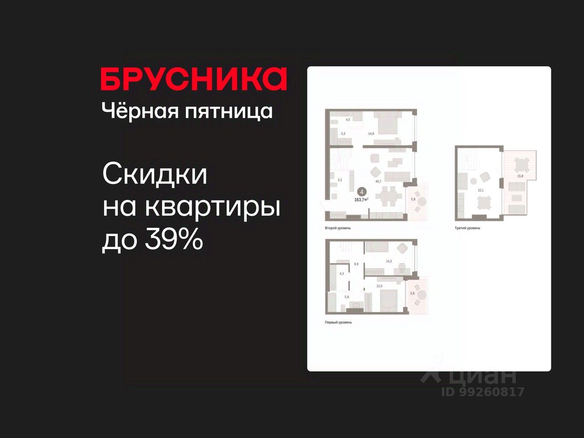 Двухуровневая квартира с кухней-гостиной и четырьмя спальнями в Доме у озера. Особенности планировки: второй санузел, окно в коридоре, гардеробная, двухуровневая, разнесённые спальни, предчистовая отделка, мастер-спальня, балкон, терраса на крыше.