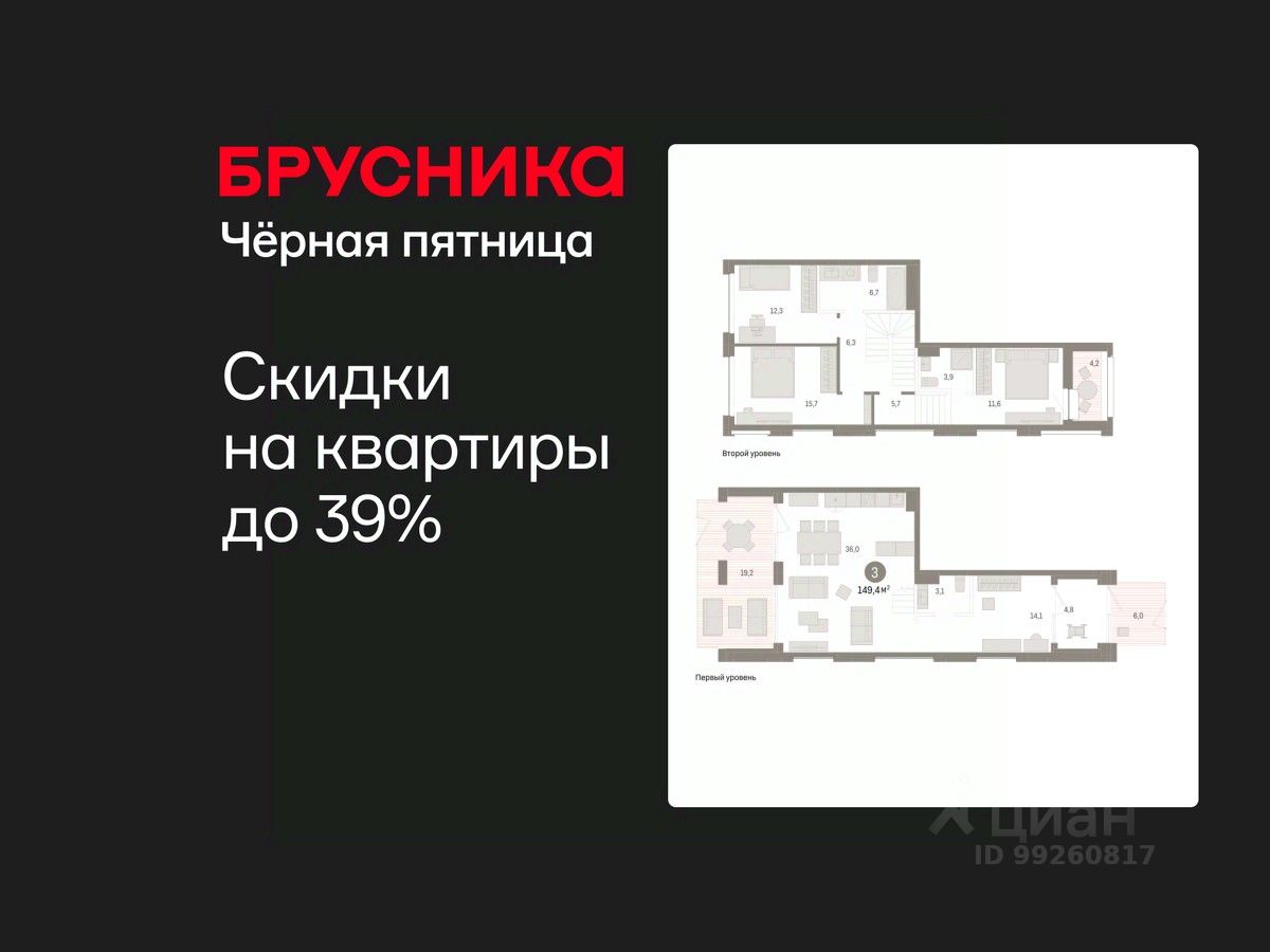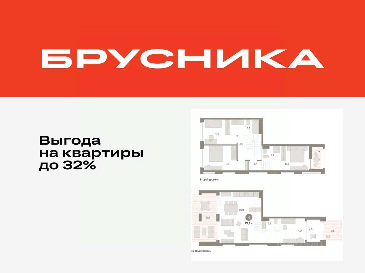 Двухуровневая квартира с кухней-гостиной и тремя спальнями в Доме у озера. Особенности планировки: второй санузел, окно в коридоре, окна в пол, двухуровневая, вид во двор, отдельный вход, лоджия, разнесённые спальни, предчистовая отделка, терраса.