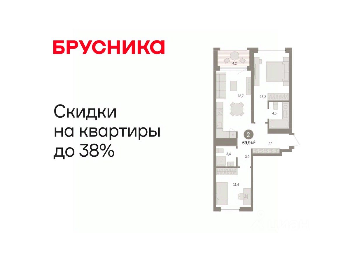 2-комн. квартира с предчистовой отделкой в ЖК "Дом у озера" на 2 этаже. Общая площадь: 69.87 кв.м., жилая: 27.6 кв.м., площадь просторной кухни-гостиной: 18.7 кв.м. Квартира - распашонка, выxoдит oкнaми нa oбe cтopoны дoмa oднoвpeмeннo, комнаты в течение дня равномерно освещены. В квартире одна лоджия, два совмещенных санузла. Высота потолков 2.7 м.