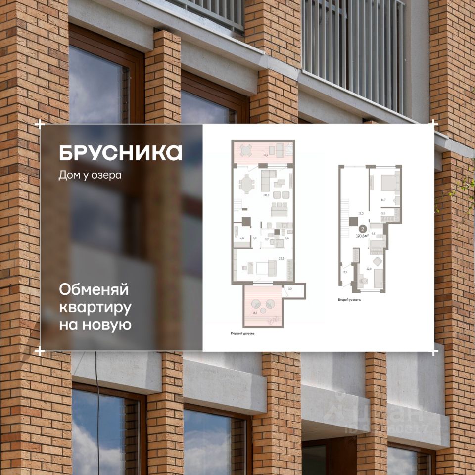 Просторная 2-комн. квартира с предчистовой отделкой в ЖК "Дом у озера" на 1 этаже. Общая площадь: 170.64 кв.м. Высота потолков 2.7 м.