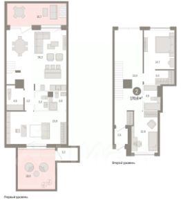Двухуровневая квартира с кухней-гостиной и двумя спальнями в Доме у озера. Особенности планировки: вид во двор, второй санузел, второй свет, гардеробная, двухуровневая, окна в пол, окна на две стороны, отдельный вход, постирочная, потолки 3 м и выше, предчистовая отделка, рабочий кабинет, разнесённые спальни, стактхаус, терраса.