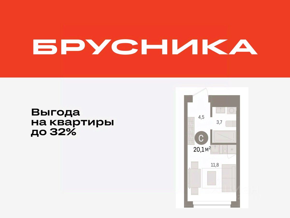 Просторная 1-комн. студия с предчистовой отделкой в ЖК "Дом у озера" на 4 этаже. Общая площадь: 20.07 кв.м., площадь гостиной 11.8 кв.м., из которых 5 кв.м. выделено под кухонную зону. Все окна выходят на одну сторону. В квартире один совмещенный санузел. Высота потолков 2.7 м.