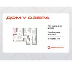 Квартира с кухней-гостиной и двумя спальнями в Доме у озера. Особенности планировки: гардеробная, вид во двор, лоджия, разнесённые спальни, предчистовая отделка, мастер-спальня.