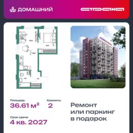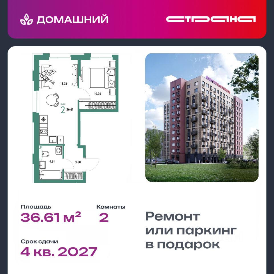 Продается 2комнатная квартира на 7 этаже от застройщика Страна Девелопмент. Площадь квартиры 36,61 кв. м.