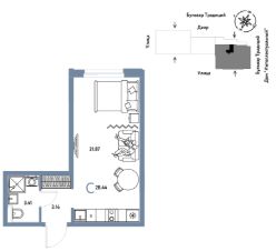Продается 1комнатная квартира на 9 этаже от застройщика Страна Девелопмент. Площадь квартиры 28,44 кв. м.