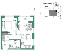 Продается 2комнатная квартира на 9 этаже от застройщика Страна Девелопмент. Площадь квартиры 38,83 кв. м.