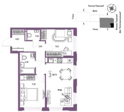 Продается 3комнатная квартира на 11 этаже от застройщика Страна Девелопмент. Площадь квартиры 58,75 кв. м.
